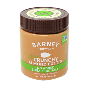Our "original, classic" Barney Almond Butter with NO added sugar or salt blended with diced roasted almonds to give it a super crunchy texture. PERFECT almond butter for those who are looking for no added sugar, and a little crunch.